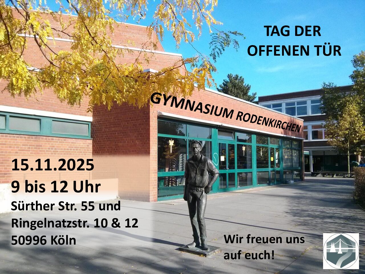 Unsere neuen Fünftklässlerinnen und Fünftklässler begrüßen wir am Donnerstag, den 28. August 2025 ganz herzlich um 12 Uhr in der Aula des Gymnasiums Rodenkirchen (Sürther Str. 55). Wir freuen uns auf euch und eure Eltern!